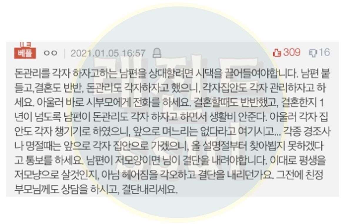 썰 레전드) 결혼 후 남편이 생활비를 안줘요...